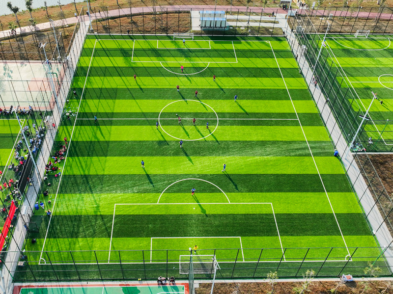 2月11日,广西南宁,民众来到明月湖公园湖心岛球场踢足球,享受周末时光。当日,南宁结束长时间的阴雨,迎来晴好天气。(图片来源:中新社)