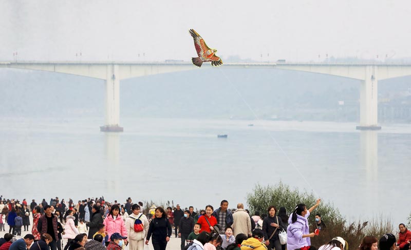 2月11日,市民在四川省泸州市江阳区滨江公园休闲。(图片来源:新华社)