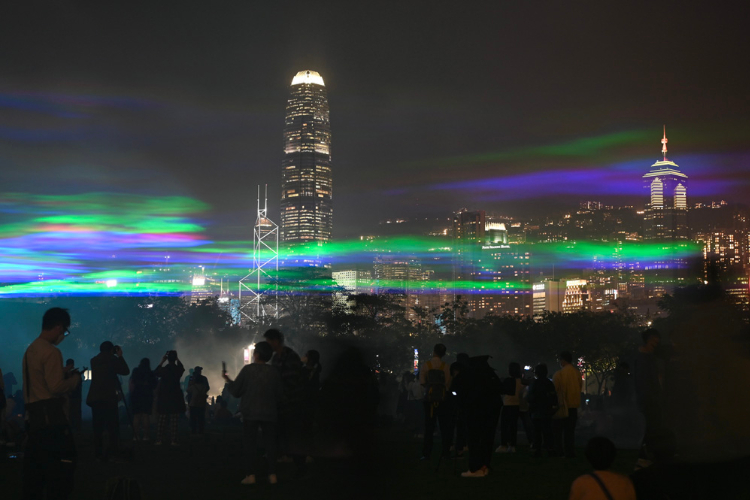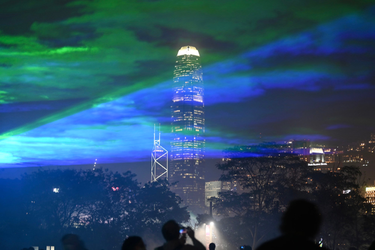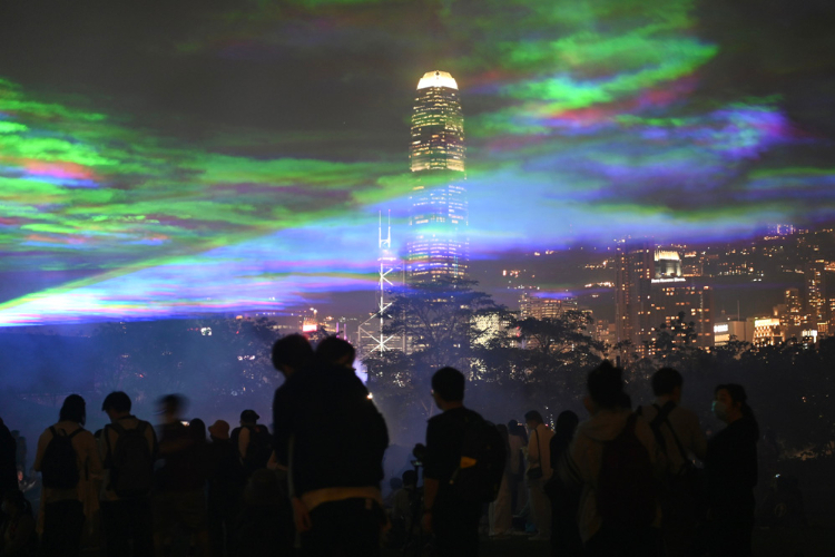 香港西九文化区上空上演迷人“极光”