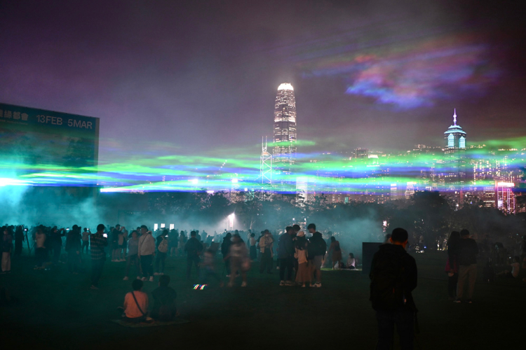【欧洲时报网】2月13日晚上,香港西九文化区上空上演迷人“极光”,大批市民在西九文化区艺术公园大草坪上观看。该“极光”为瑞士艺术家Dan Acher的大型户外艺术装置《约定极光》,曾经在全球超过30个城市巡展,并首度来到香港展出。
