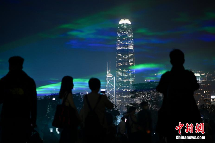 “极光”与香港维多利亚港高楼大厦景色。(图片来源:中新社)
