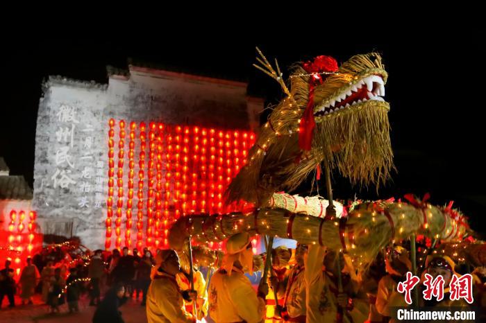 2月17日,安徽省黄山市徽州区,村民正在表演非遗民俗“蜀源草龙”。(图片来源:中新网)
