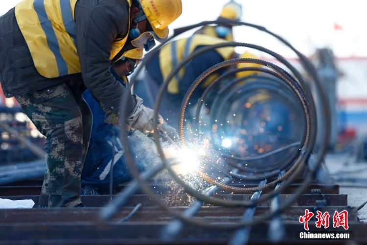 2月20日,施工人员在北京地铁12号线东坝车辆段施工。(图片来源:中新网)