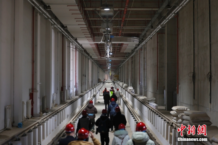 2月20日,北京地铁12号线东坝车辆段加紧施工。(图片来源:中新网)