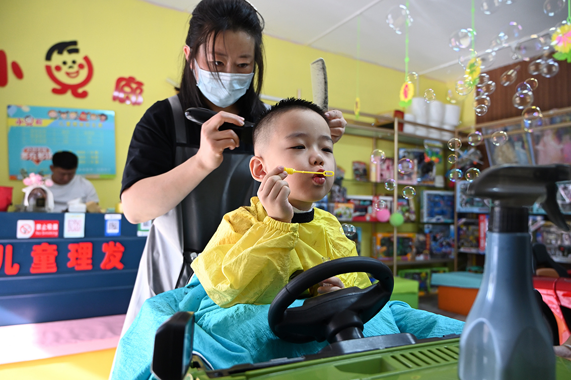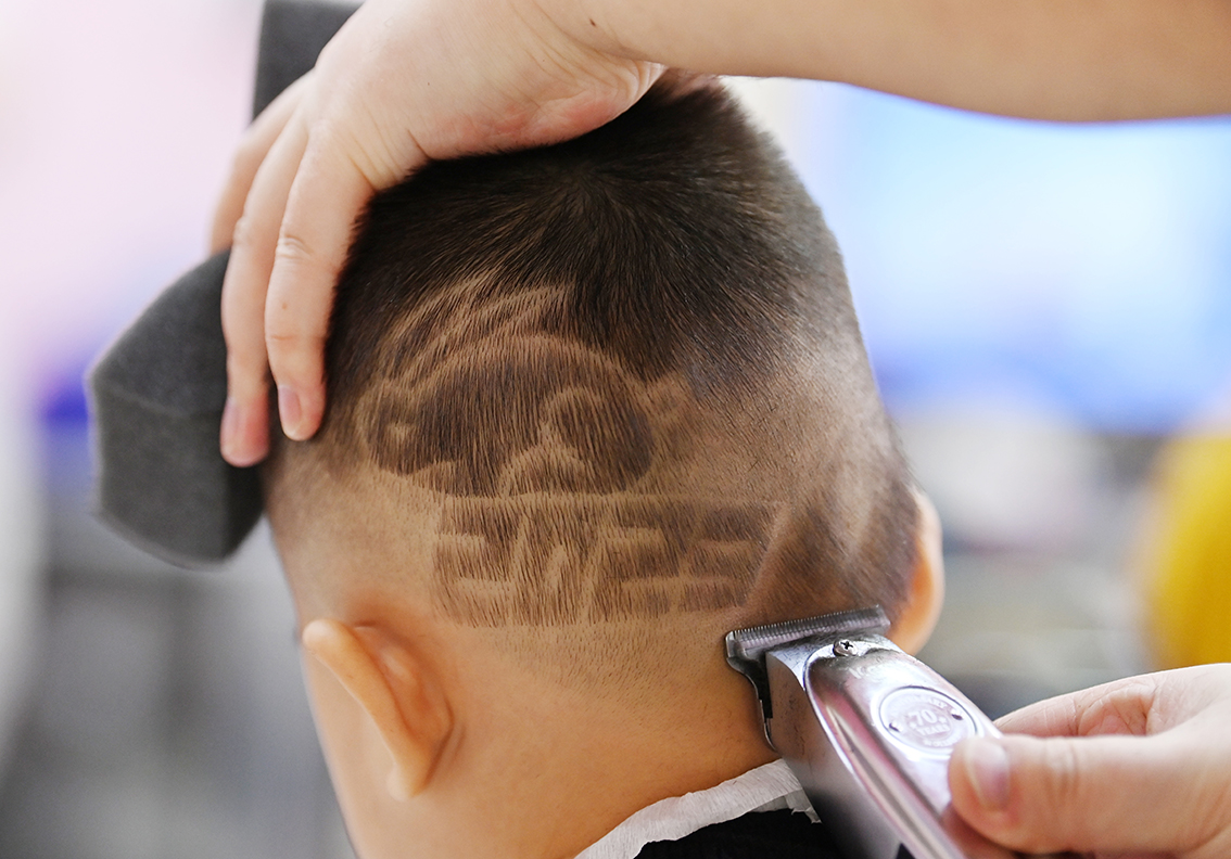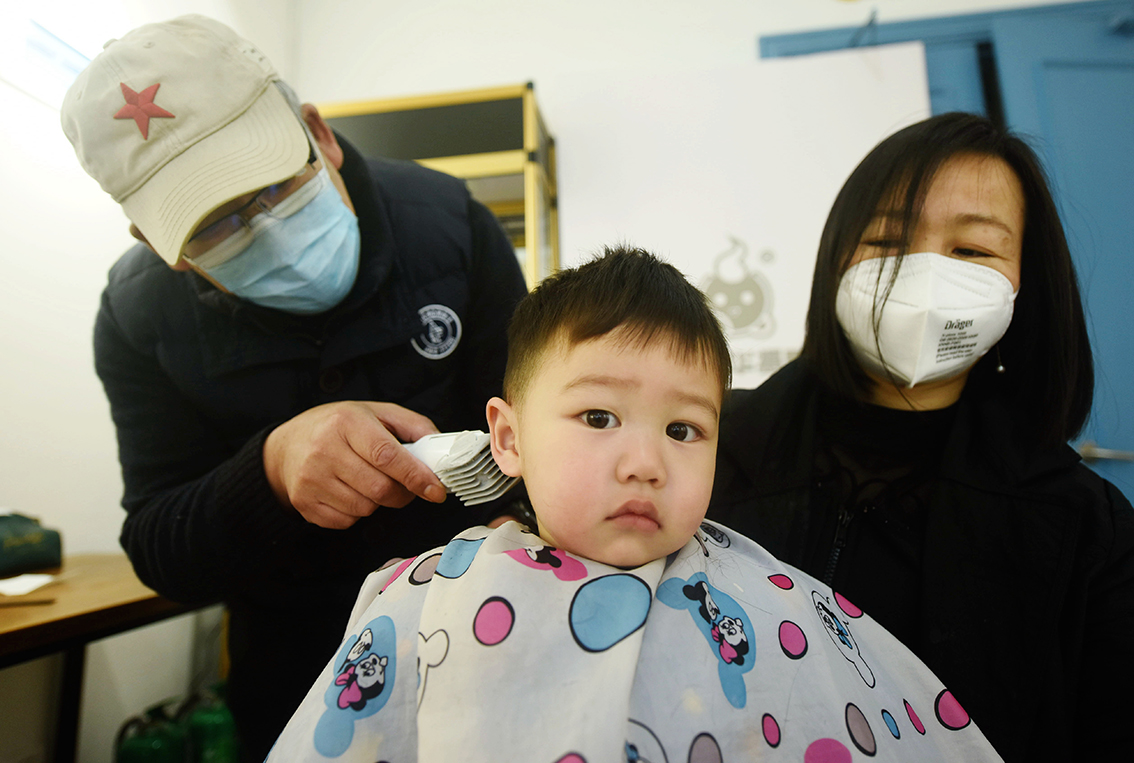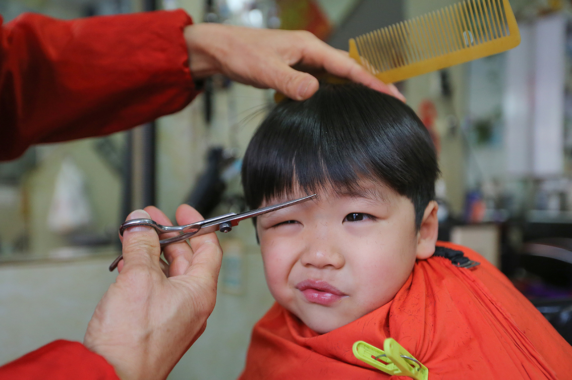 2月21日,内蒙古呼和浩特市,儿童在一家发廊理发。(图片来源:中新社)