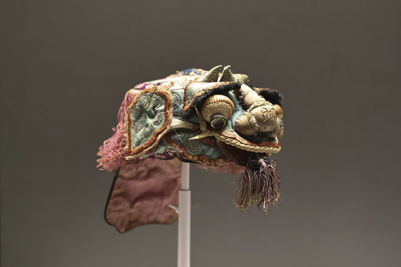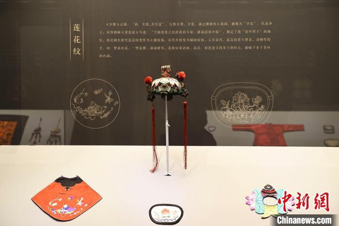 展出的清代刺绣垂辫狮子童帽。(图片来源:中新社)