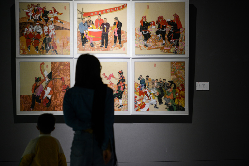 图为市民观看“全国架上连环画展”。(中新网发/重庆美术馆供图)