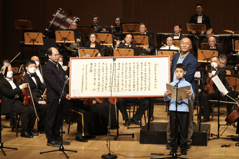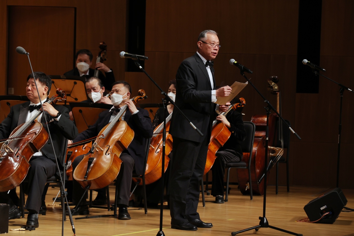 来自满天星业余交响乐团的演奏员代表在诵读梁启超先生的《说希望》。(图片来源:中国日报网)