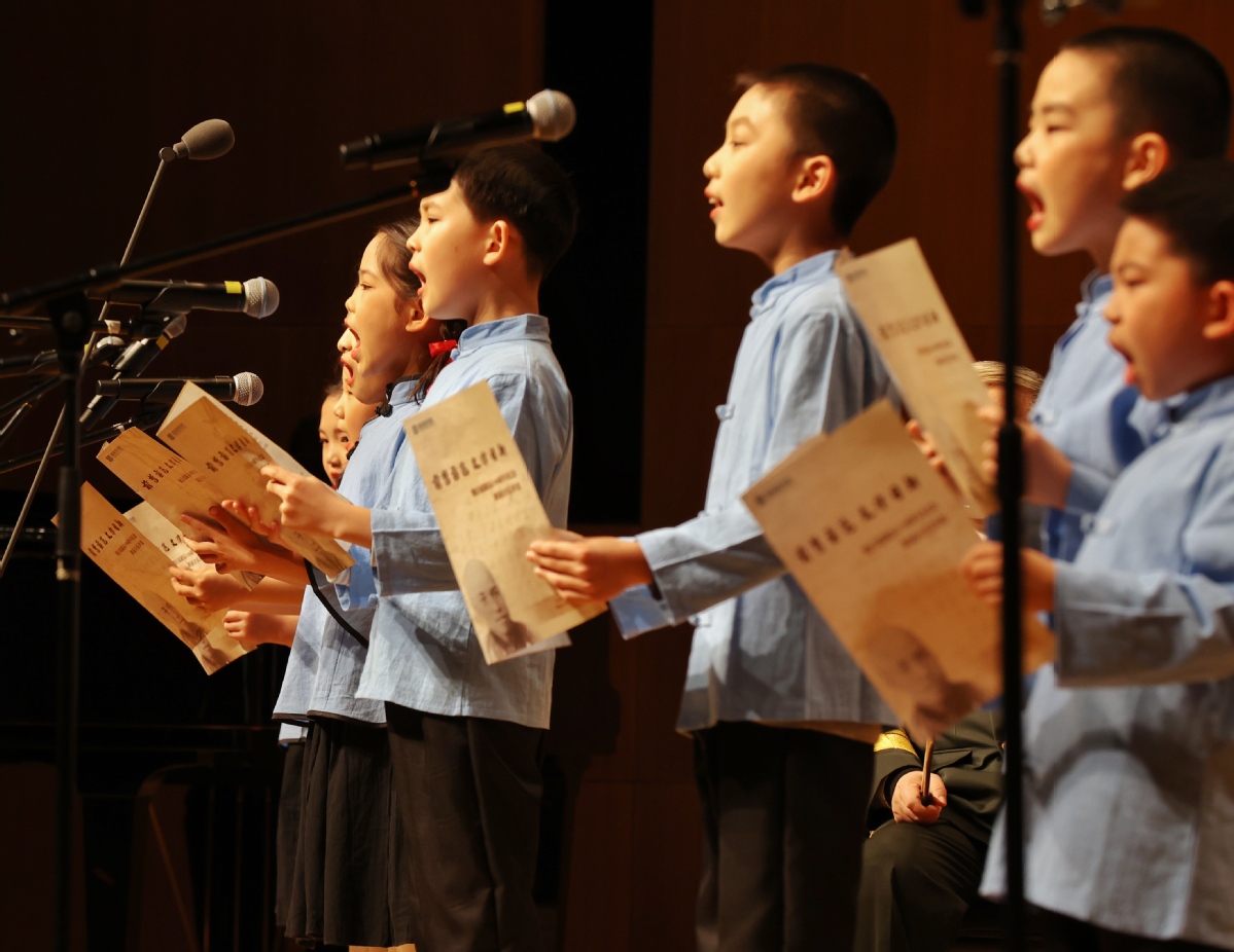 活动旨在通过配乐朗诵加互动的沙龙形式,歌颂梁启超先生的爱国情怀和创新意识,传播梁家优良家风,启迪大众,在慷慨激昂的诵读和气势磅礴的交响乐中让观众感受这位“文化巨人”传奇的一生。图为少年儿童在朗诵梁启超先生的经典名作《少年中国说》。(图片来源:中国日报网)