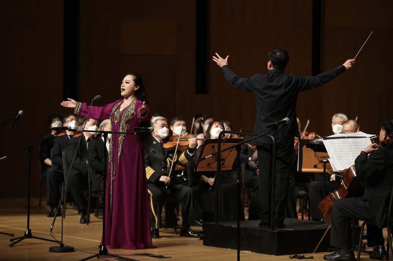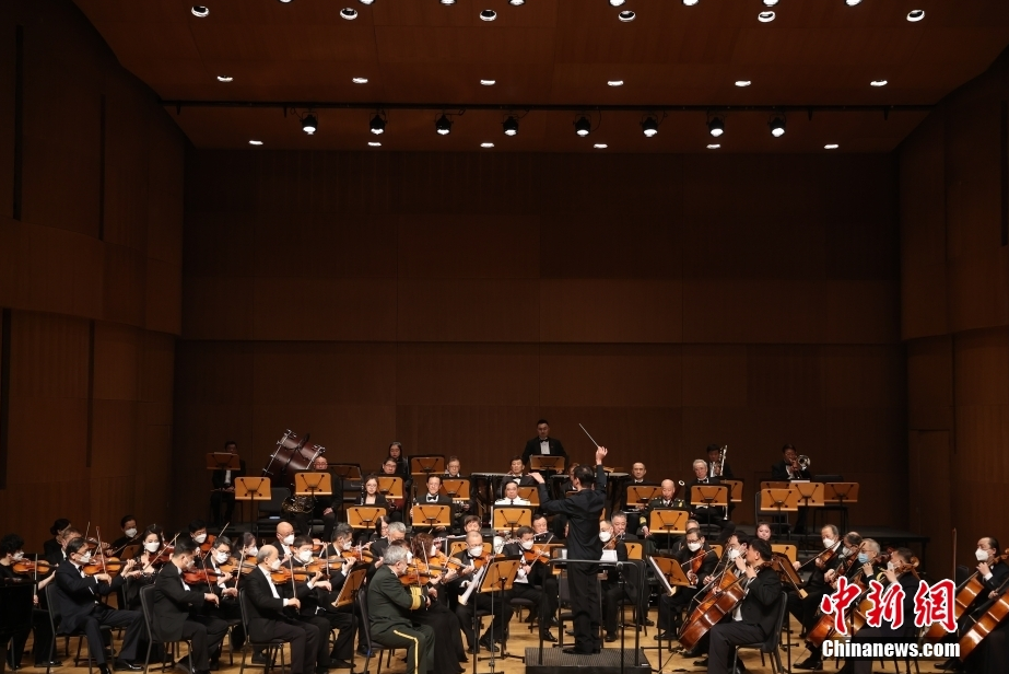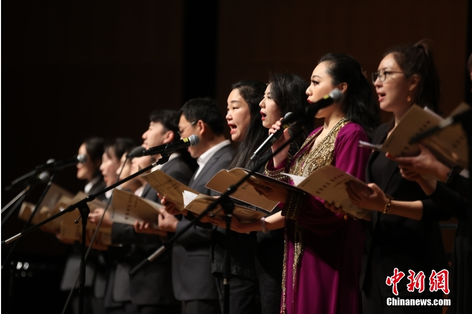 陈思曼(左)演唱《我爱你,中国》。(图片来源:中新社)