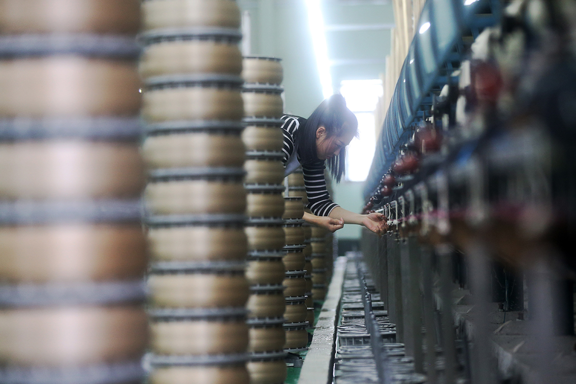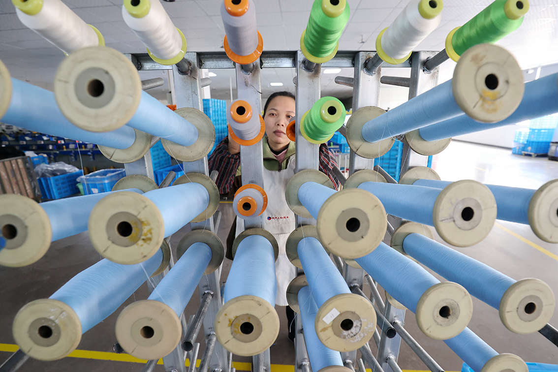 2月25日,工人在浙江省湖州市德清县新安镇一家纺织企业生产车间内忙碌。(图片来源:本文图片除标注外均自新华社)