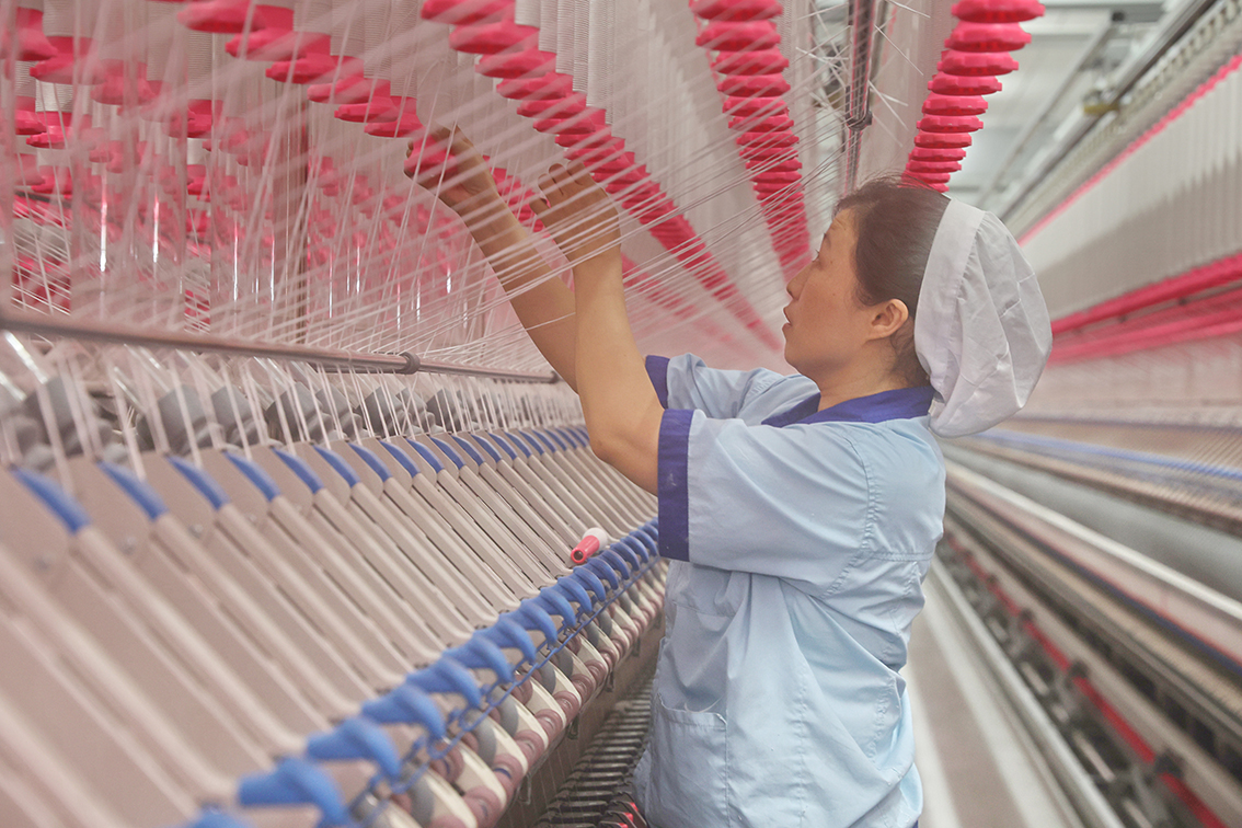 近日,山东正凯新材料股份有限公司,职工在加工高端纱线。(图片来源:人民网)