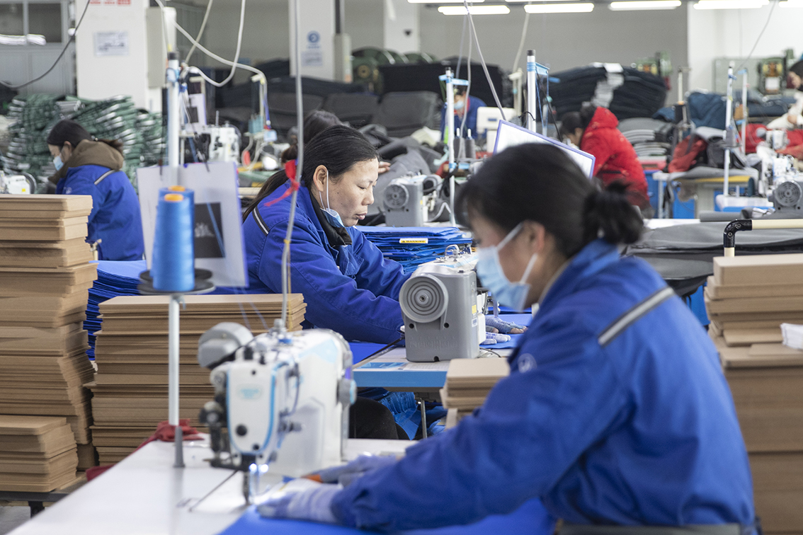 2月17日,河南省平舆县,工人在生产加工户外休闲用品。(图片来源:中新社)