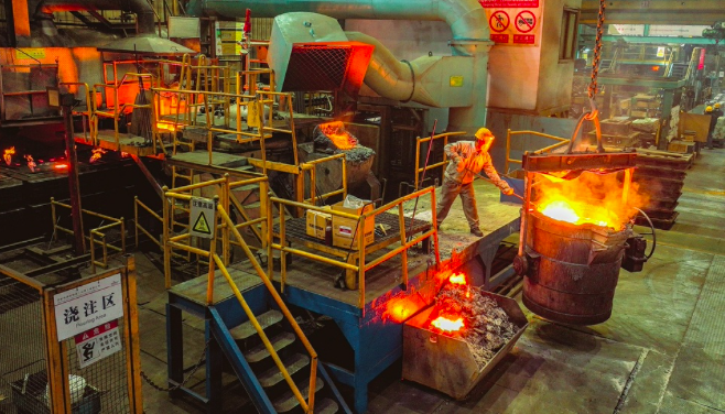 2月16日,山西绛县亚新科国际铸造(山西)有限公司的生产车间内,工人正在生产订单产品。(图片来源:《山西日报》)