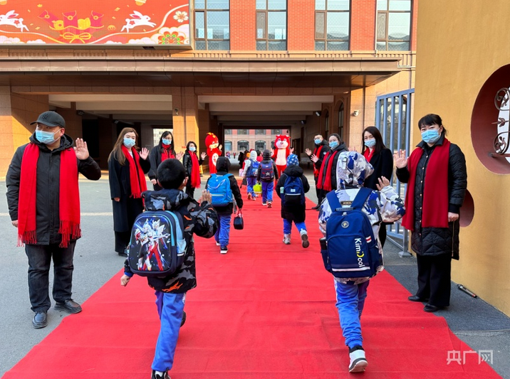 2月27日,长春市中小学2023年春节开学首日,全市1296所中小学校开学,约85万学生回到校园怀抱。图为长春市朝阳区艳春小学校门前洋溢着浓浓的暖意。(图片来源:央广网)