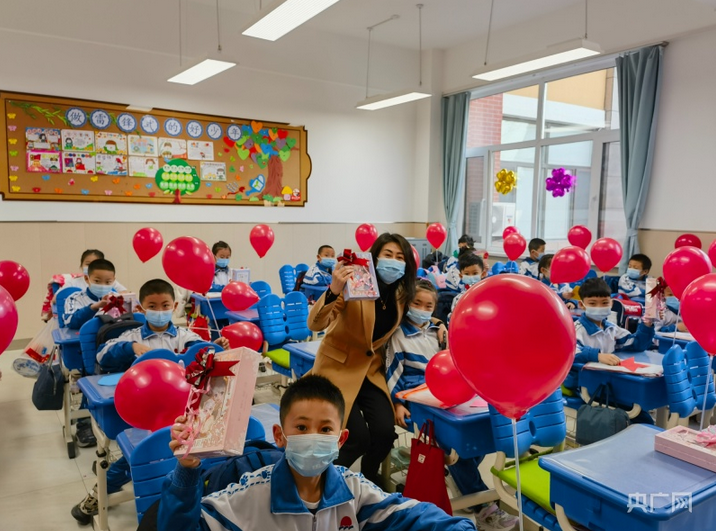 长春市朝阳区艳春小学的老师为学生们细心准备了欢迎礼物。(图片来源:央广网)