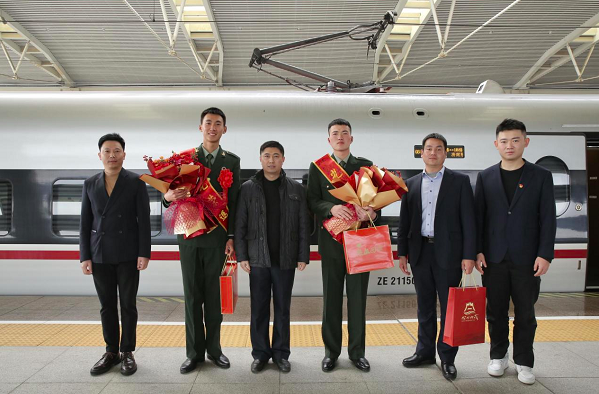 3月1日上午,姑苏区退役军人事务局、街道服务站和退役军人志愿者组成了“亲友团”,来到苏州高铁北站,为来自广西某部的姑苏籍退役士兵接风洗尘。(图片来源:央广网)