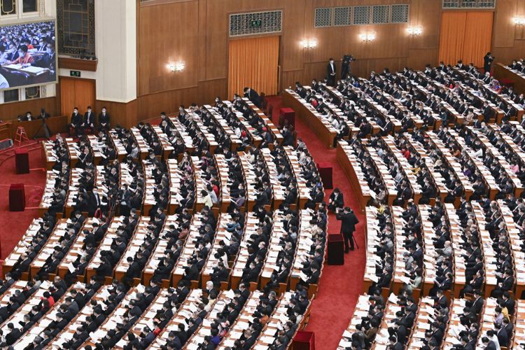 3月7日,十四届全国人大一次会议在北京人民大会堂举行第二次全体会议。
