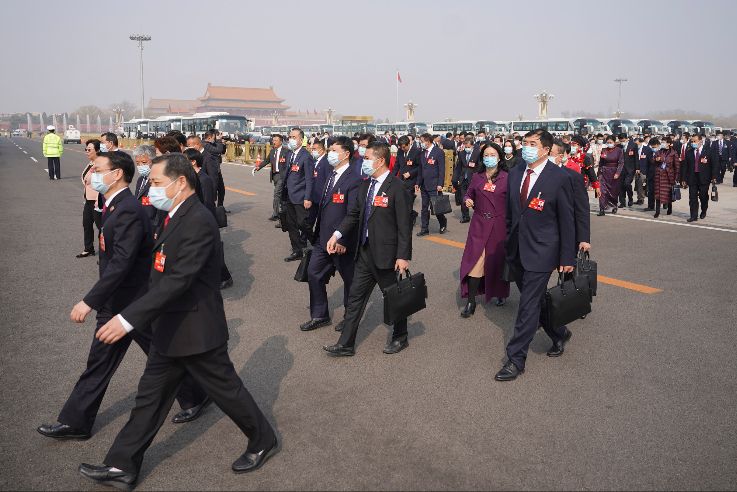 会议前,全国人大代表走向会场。