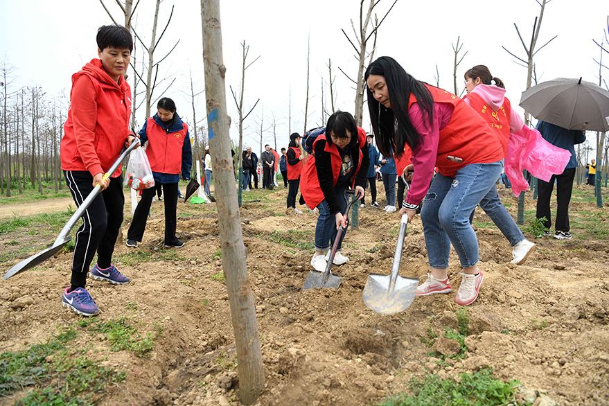 3月11日,志愿者在合肥滨湖国家森林公园红杉林参加植树活动。当日,安徽省合肥市包河区“履行植树义务共建美丽包河”植树月活动在合肥滨湖国家森林公园红杉林举行。(图片来源:新华社)