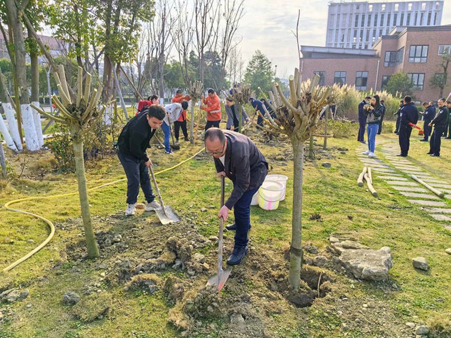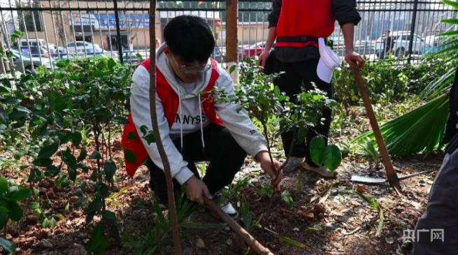 3月11日,重庆城市科技学院电气工程与智能制造学院党总支,联合永川区南大街火车站社区共同开展“春学党史,植树添绿”植树节主题党日活动。(图片来源:央广网)