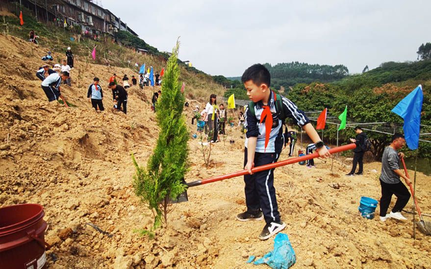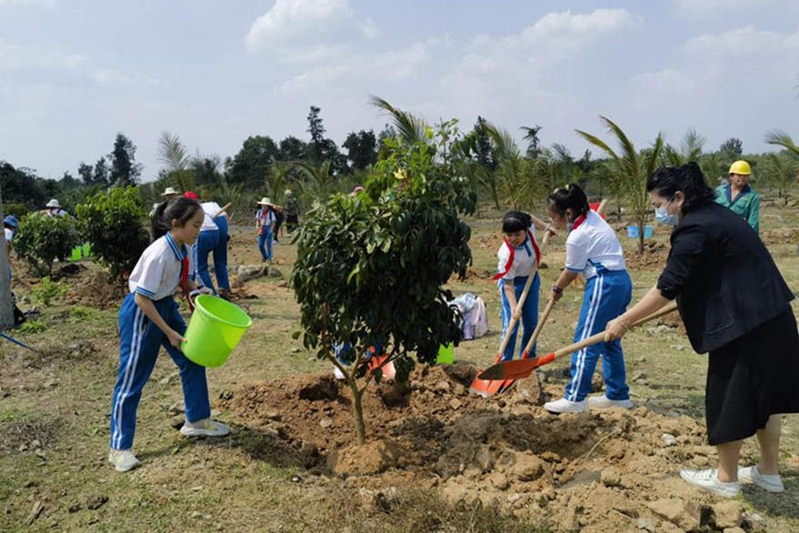 3月10日下午,海口市龙华区园林局干部职工与海口市第十一小学师生一同来到2023年春季群众性义务植树点,在园林专家的指导下,35位师生合力在龙泉镇椰子头村的植树造林点种植了20棵龙眼树。(图片来源:人民网)