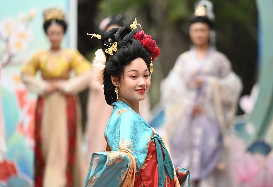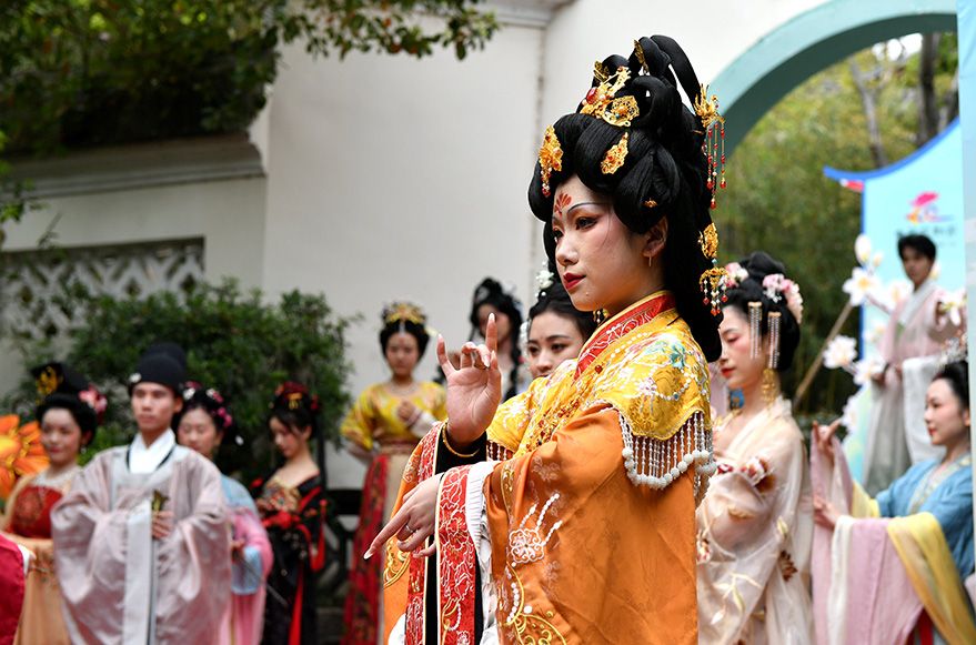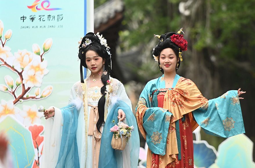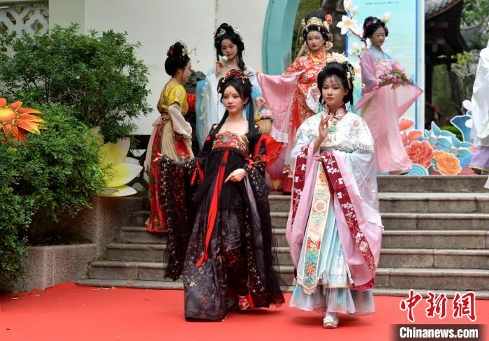 图为参加“中华花神”决赛的选手进行汉服展示。(图片来源:中新网)
