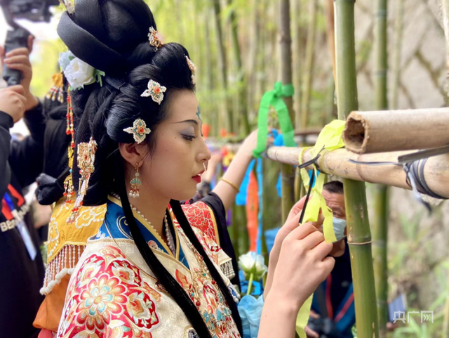 “中华花神”选手在体验“赏红”祈福仪式。(图片来源:央广网)