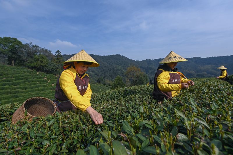 3月13日,2023年杭州西湖龙井春茶开采。(图片来源:浙江日报官方账号)