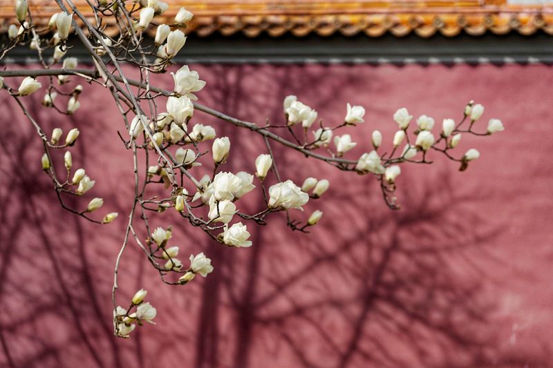 3月13日在北京长安街拍摄的玉兰花。(图片来源:新华社)