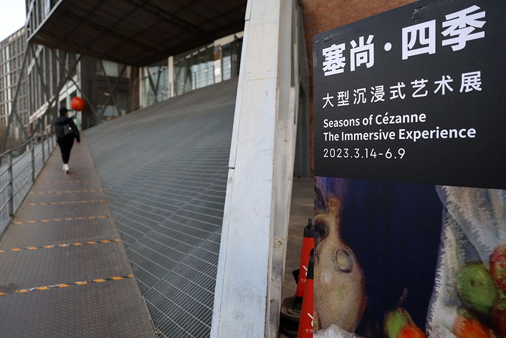 2023年3月14日,参观者走进展厅准备欣赏沉浸艺术展。当日,“塞尚·四季:大型沉浸式艺术展”于北京今日美术馆开门迎客。展览搭建了3个互动区域,呈现动态作品17幅,将沉浸式科技充分运用于约800平米的展厅空间,配套56台高清投影机,营造立体声效。展厅提供红外感应交互式观展体验,在互动设计中运用裸眼3D与沉浸式投影成像技术,将塞尚的作品生动鲜活地带到中国观众面前。(图片来源:本文图片均由欧洲时报特约记者李大鹏摄)