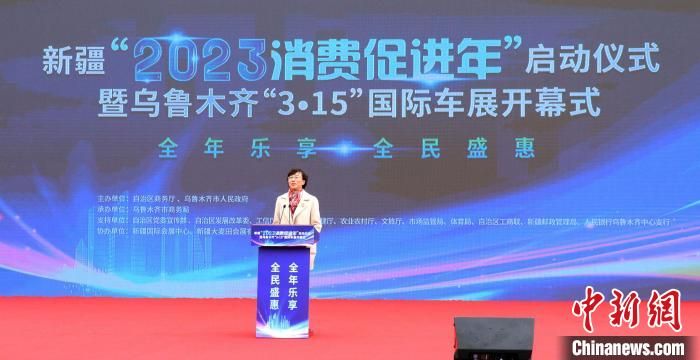 3月15日,新疆“2023消费促进年”启动仪式暨乌鲁木齐“3·15”国际车展在新疆国际会展中心举行。(图片来源:中新网)