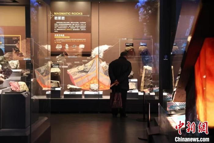 游客在地质演化展厅参观岩石。(图片来源:中新网)