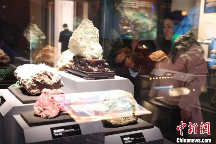 展厅内陈列的部分岩石。(图片来源:中新网)