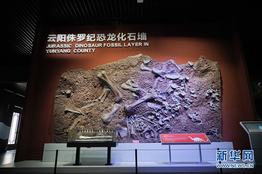 生命演化厅复原了云阳侏罗纪恐龙化石墙部分化石富集区。(图片来源:新华网)