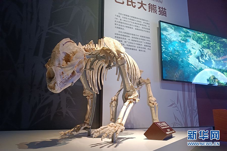 馆内展出的巴氏大熊猫复原装架。(图片来源:新华网)