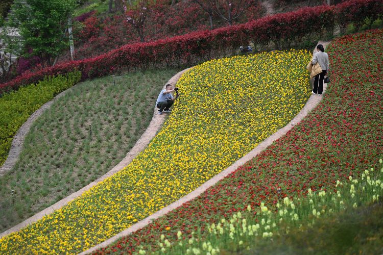 【欧洲时报网】3月21日,重庆璧山古道湾公园内的梯田花海风景如画,吸引民众打卡。据了解,该公园依地势而建,以独特造景手法,利用坡坎崖打造出一片30级波浪式等高线梯田,金丝桃、天竺葵、波斯菊、西洋鹃、美女樱等多种花卉草木,错落有致地绽放在层层梯田间,吸引不少民众前往观赏。