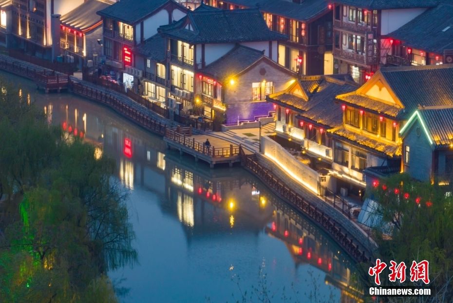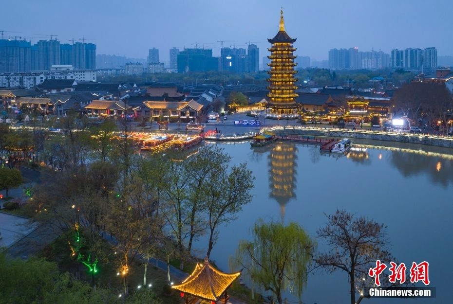 江苏淮安里运河文化长廊夜景。(图片来源:中新社)