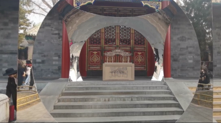 借助镜像手法呈现完整的北京西安门模型。(图片来源:中新网)