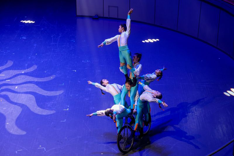 开幕演出为武汉杂技团创作的杂技主题晚会《英雄之城》。(图片来源:中新社)