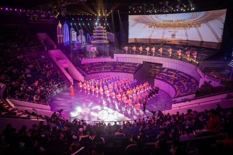 3月24日拍摄的第十四届武汉国际杂技艺术节开幕式。(图片来源:新华社)