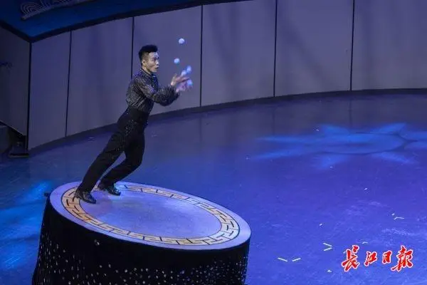 杂技节目《雨中狂想——球技》。(图片来源:《长江日报》)