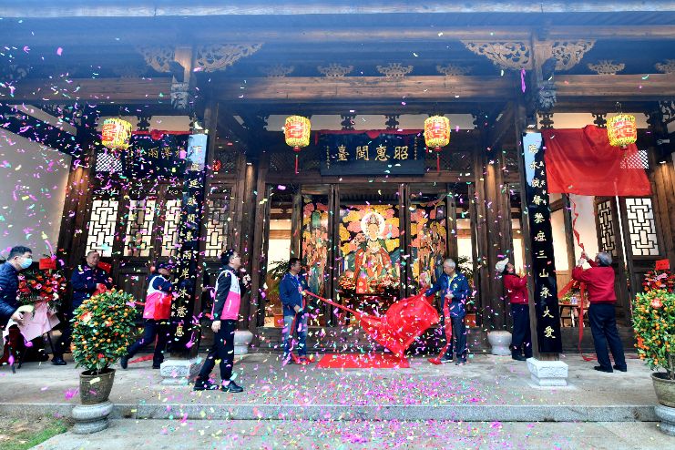 福建福州,陈靖姑故居牌坊揭幕仪式。(图片来源:中新社)
