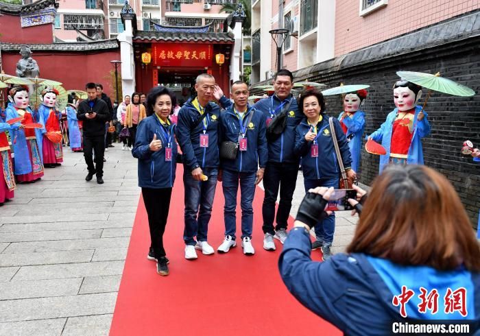 中国台湾临水夫人宫庙代表在福州陈靖姑故居合影留念。(图片来源:中新网)