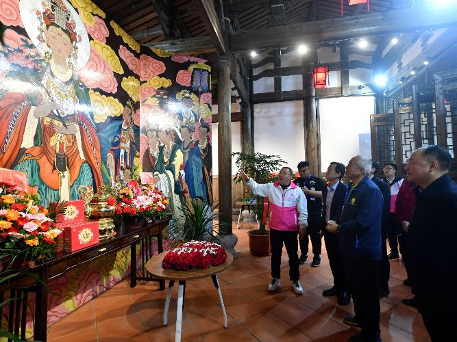 两岸临水夫人宫庙代表在福建福州参观陈靖姑故居。(图片来源:中新社)