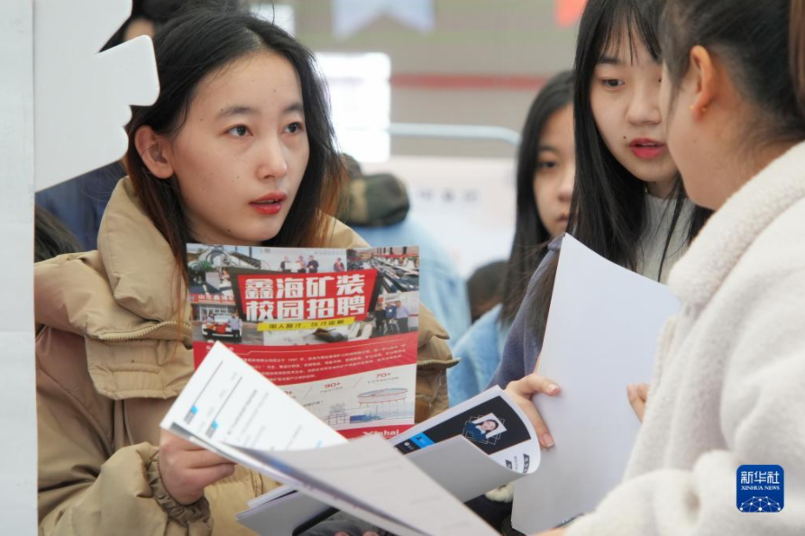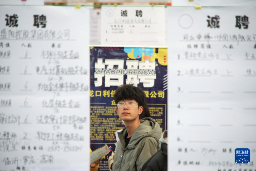 3月25日,在山东烟台理工学院,应届毕业生在2023届毕业生春季校园招聘会上了解岗位信息。(图片来源:新华网)