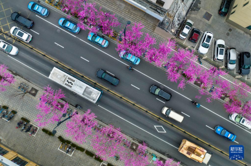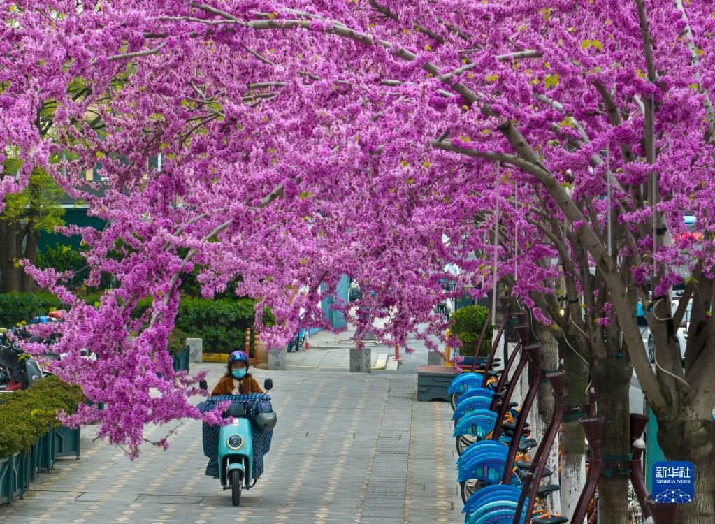 【欧洲时报网】近日,多地紫荆花开放,一串串紫色的花朵娇艳醉人。穿行其间,一路繁花相伴。