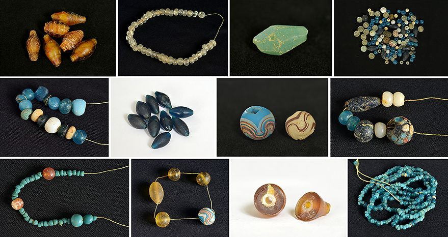 贵州贵安新区大松山墓群坟坝顶墓群出土玻璃制品(拼版资料照片)。