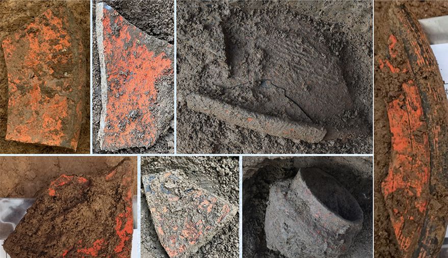 资料图为河南偃师二里头都邑多网格式布局中二里头都邑西北部出土的带漆陶片。 (图片来源:中新社)