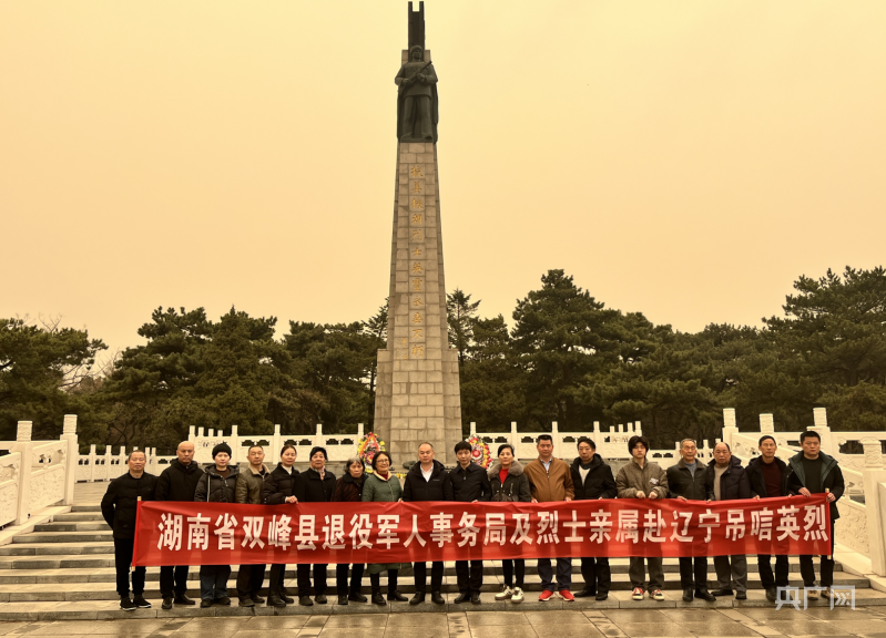 近日,受湖南省娄底市双峰县委、县政府委托,双峰县退役军人事务局组织14名烈士亲属代表,赴沈阳抗美援朝烈士陵园祭奠先烈,缅怀抗美援朝保家卫国战争中壮烈牺牲的双峰籍革命烈士。(图片来源:央广网)